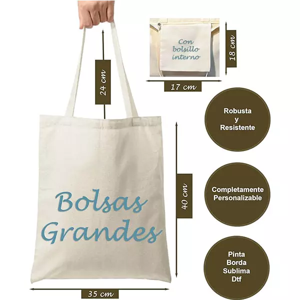 Descubre la versatilidad de nuestra bolsa de tela grande con cremallera y bolsillo interior, ideal para cualquier ocasión. Fabricada en lona duradera, es lavable, reutilizable y personalizable, perfecta para compras, universidad, trabajo y más. Un accesorio ecológico, práctico y elegante que se adapta a tu estilo de vida. Para pedidos personalizados, contáctanos por correo.