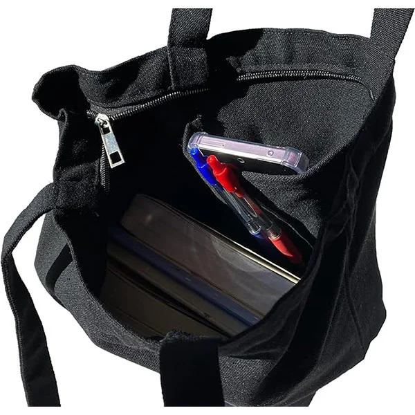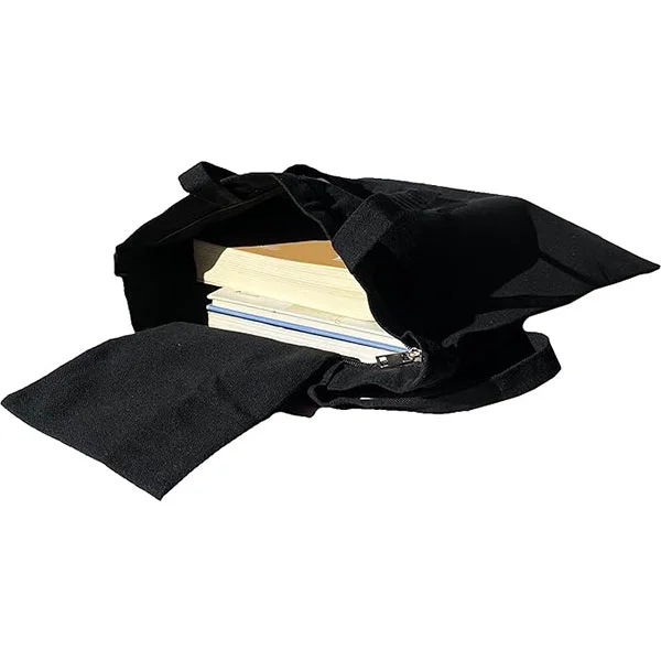 Tote Bag Tela Negra con Cremallera y Bolsillo – Bolsa Grande, Resistente y Personalizable
